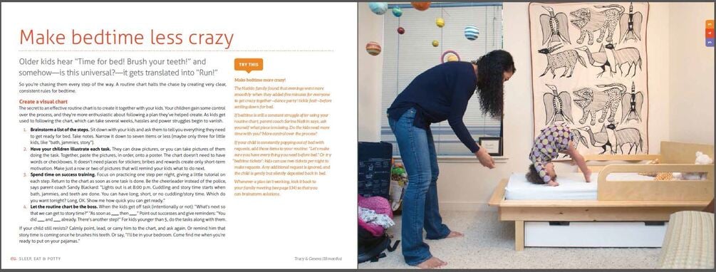 But when they're laid out in a friendly way, with examples, we can do them. I won’t leave you hanging with “Sign language is great for babies; here are a few signs.” I say “Here’s how researchers teach babies sign language, and here’s my experience with it.” I won’t say “Stay calm and your child will be more calm” but “Here’s the best three-part framework I’ve found for staying calm.”
